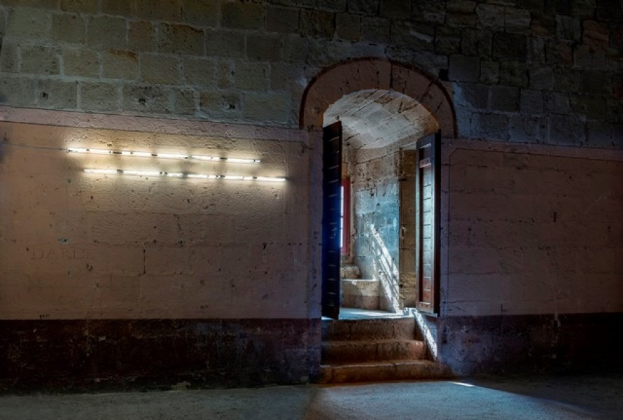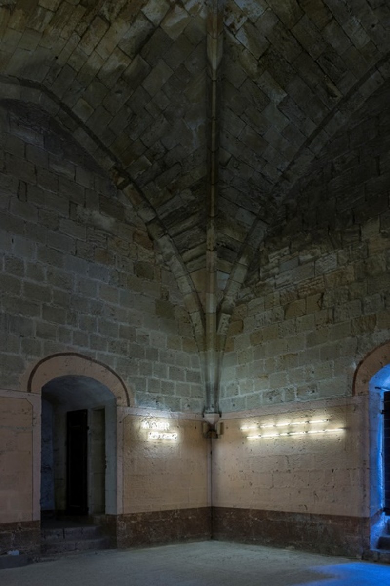 Connu pour son travail autour du monde carcéral, Nicolas Daubanes a réalisé dans le cadre de la 7ème édition d’IN SITU Patrimoine et art contemporain, une œuvre lumineuse, inspirée par les graffitis visibles sur les murs de la tour nord de la cathédrale et sur ceux de la tour Gilles Aycelin. Réalisés en néons, les mots et les dates de l’histoire ancienne et moderne du monument réapparaitront dans la pénombre de la salle qui a abrité le télégraphe de Chappe au milieu du 19 ème siècle.